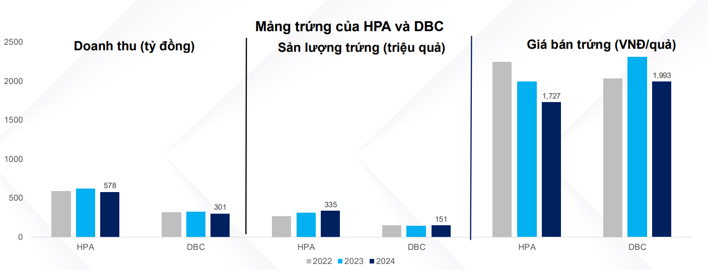 HPA không có ý định mở rộng sang mảng gà thịt do cạnh tranh gay gắt trong và ngoài nước, riêng mảng trứng gà cũng chỉ giữ quy mô hiện tại do cung hiện đang lớn hơn cầu ở 1 vài thời điểm. Hiện HPA đang nắm giữ vị trí top 1 thị phần trứng gà tại khu vực phía Bắc và hiện 2 nước Thái Lan và Campuchia đang xảy ra xung đột sẽ mở ra cơ hội cho mảng này tại thị trường Việt Nam trong thời gian tới