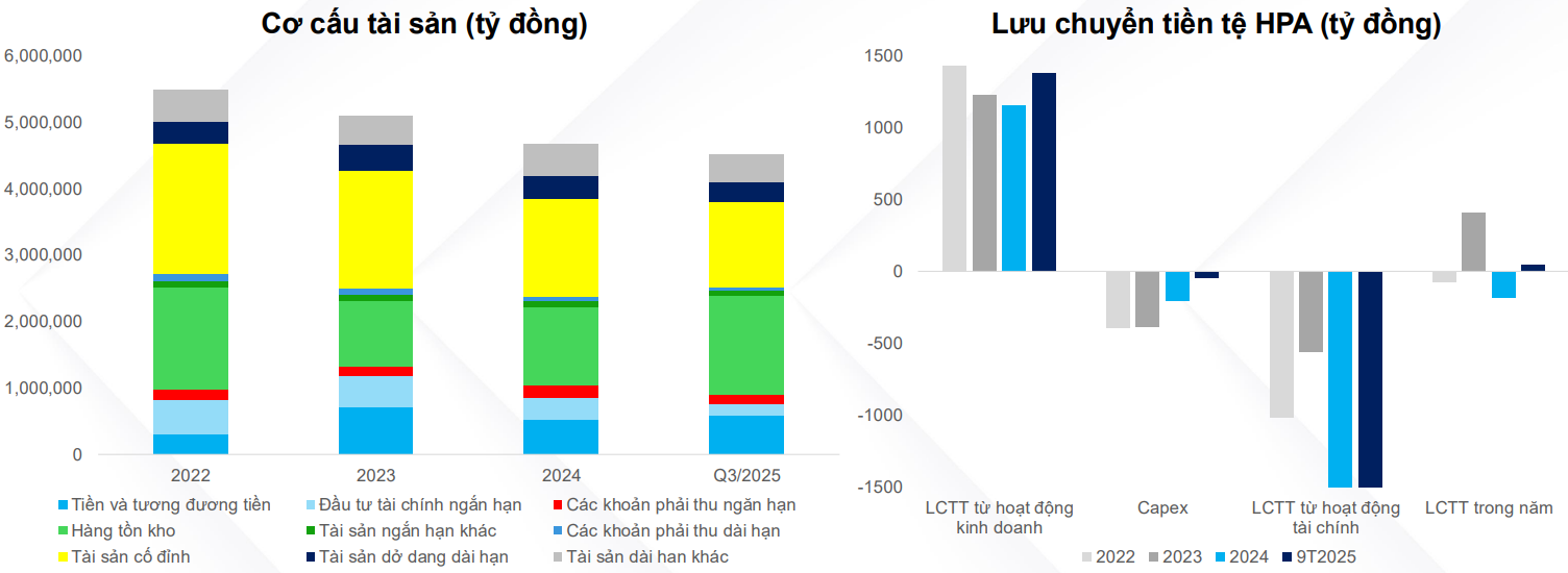 Cơ cấu tài sản lành mạnh, tiền mặt cao, khoản phải thu chỉ dưới 5% tổng tài sản, kèm với HPA sử hữu dòng tiền rất tốt, CFO liên tục dương, trong 2 năm gần đây thì HPA dường như không capex gì quá lớn, chỉ khi nào các khoản đầu tư có hiệu quả và đạt hiệu suất cao thì HPA mới có nhu cầu mở rộng, đầu tư cuốn chiếu giúp hiệu quả sử dụng vốn trong dài hạn của HPA liên tục duy trì ở mức cao