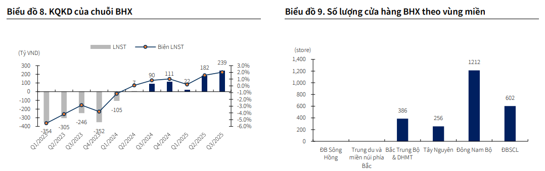 Hiệu quả vận hành tích cực từ các cửa hàng giúp BHX hướng đến mức lợi nhuận ròng khoảng 700 tỷ đồng trong 2025. Đây là cơ sở để chuỗi tiếp tục mở rộng với mục tiêu hơn 700 điểm bán trong 2026, trọng tâm phát triển sẽ dịch chuyển sang Bắc Trung Bộ và Đồng bằng Sông Hồng, nơi công tác chuẩn bị đã được khởi động.